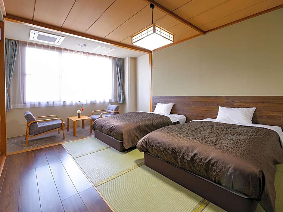 The twin room offers air conditioning, tatami, as well as a private bathroom boasting a hairdryer and slippers. The twin room provides a flat-screen TV, an electric kettle, yukata and heating. The unit has 2 beds.